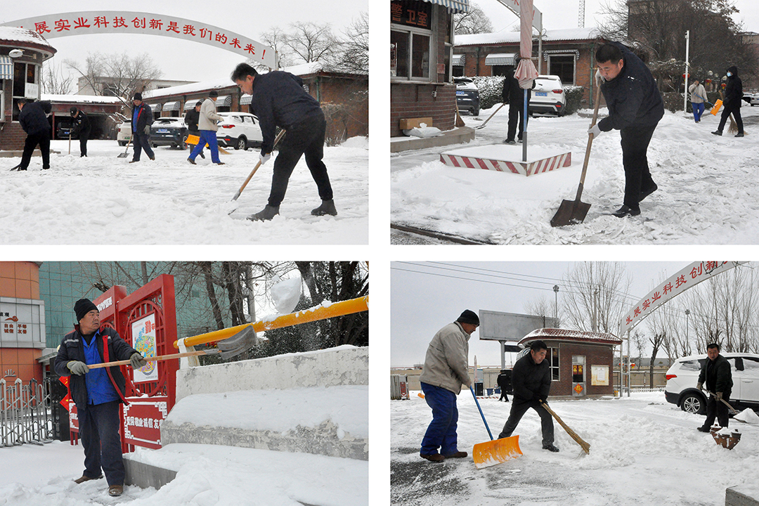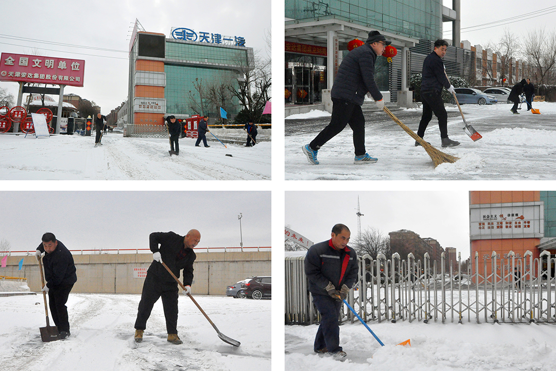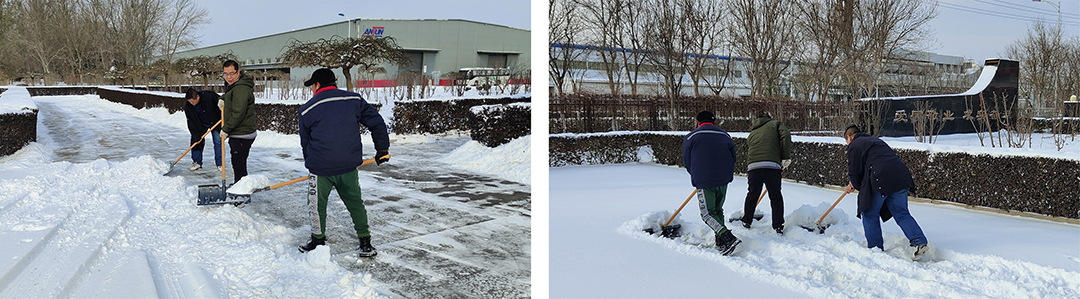 20日-21日晨,受大范圍寒潮影響,我市大部分地區出現中到大雪,翩然而至的龍年第一場春雪為春節期間的城市平添了幾分浪漫與詩意,但雪景雖美,也為人們的出行和工作帶來諸多不便。為保障員工們安全出行,21日一大早,安達集團本部及各子公司廠院內,各單位員工在相關領導帶領下,手拿鐵鍬、掃帚、簸箕等工具,對辦公樓門前區域和廠區內重要作業點位開展積雪大清掃活動。瑟瑟寒風,“斷崖式”降溫,無不顯示著倒春寒的“威力”,安達人不畏嚴寒,“浴”雪奮戰,大家擰成一股繩,全力除雪,用行動完美詮釋著“團結就是力量”。